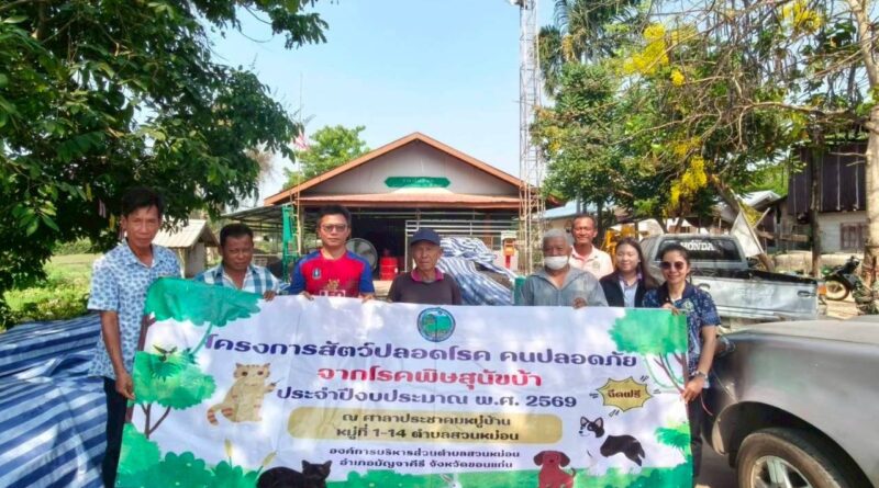 วันที่ 24,26,30 มีนาคม 2569 และวันที่ 3 เมษายน พ.ศ. 2569 เวลา 09.00 น. นายธนวรรธน์ สังข์ทอง นายกองค์การบริหารส่วนตำบลสวนหม่อน มอบหมายให้งานส่งเสริมสุขภาพและสาธารณสุข สำนักปลัด องค์การบริหารส่วนตำบลสวนหม่อน จัดโครงการสัตว์ปลอดโรค คนปลอดภัย จากโรคพิษสุนัขบ้า ตามพระปณิธานของศาสตราจารย์ ดร.สมเด็จเจ้าฟ้าฯ กรมพระศรีสวางควัฒน วรขัตติยราชนารี ประจำปีงบประมาณ พ.ศ 2569 โดยลงพื้นที่ให้บริการการฉีดวัคซีนปัองกันโรคพิษสุนัขบ้าให้แก่สุนัขและแมว ในพื้นที่ตำบลสวนหม่อน ทั้ง 14 หมู่บ้าน