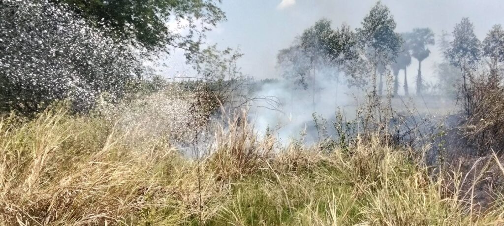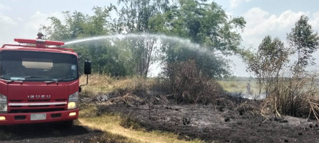 งานป้องกันและบรรเทาสาธารณภัย สำนักปลัด องค์การบริหารส่วนตำบลสวนหม่อน ได้รับแจ้งทาง ว.13 สถานที่เป็นบ้านโนนพยอมรับแจ้งว่าเนื่องจากมีไฟไหม้หนองสาธารณะผู้ใหญ่บ้านกลัวไฟลามเป็นวงกว้าง
